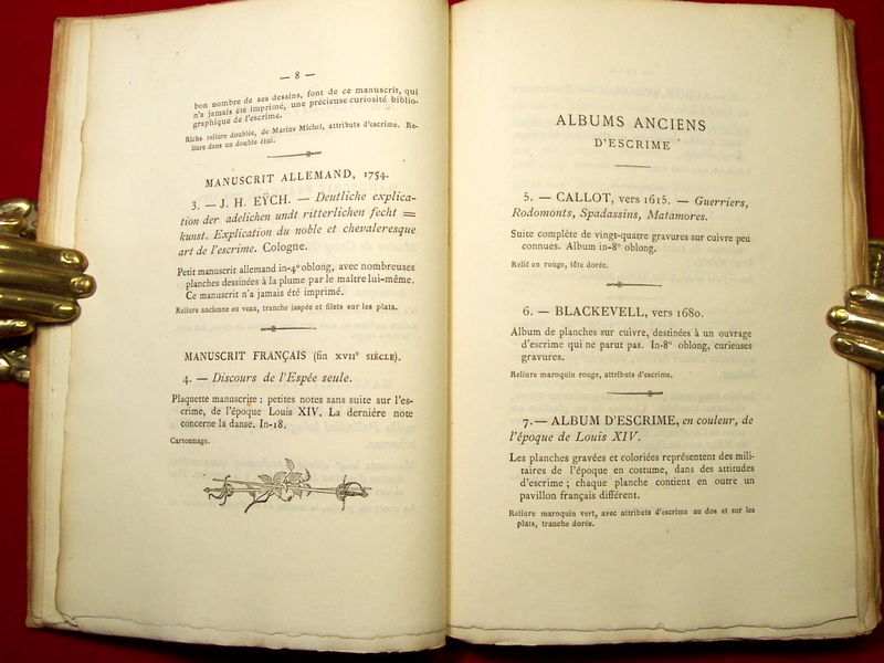 catalogue édité du vivant d'un maître d'Armes bibliophile de la fin du 19eme